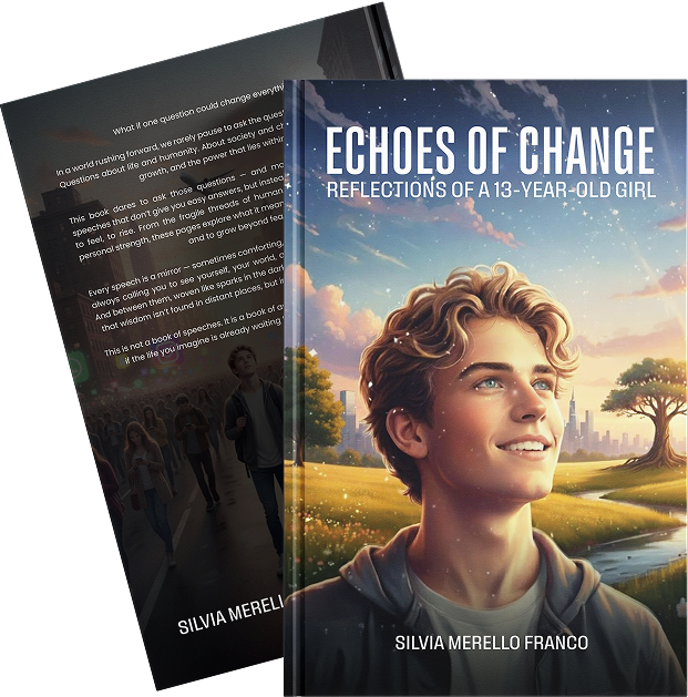 “Echoes of Change” is a heartfelt and thoughtful book that captures the inner world of a young girl who sees life with unusual depth and honesty. Written by Silvia Merello Franco at just thirteen, the book gathers her reflections, personal insights, and heartfelt observations about the world around her. Rather than telling stories, she opens windows, windows into how she understands people, society, growing up, and the quiet moments that shape who we become.
